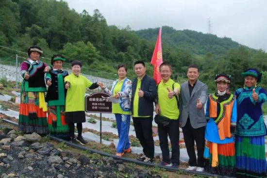 在人参果种植基地现场,16支帮扶团在种植基地参加了人参果选地块立牌授旗仪式、甘洛县特色产业招商引资推介会。