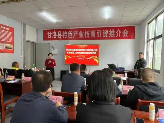 在甘洛县特色产业招商引资推介会上,凉山片区甘洛工作组组长、易田集团董事长、易田党支部书记滕德素在会上详细解读了“万家帮万民 助力乡村振兴‘我在甘洛有棵苗’爱心助农行动”的实施情况。