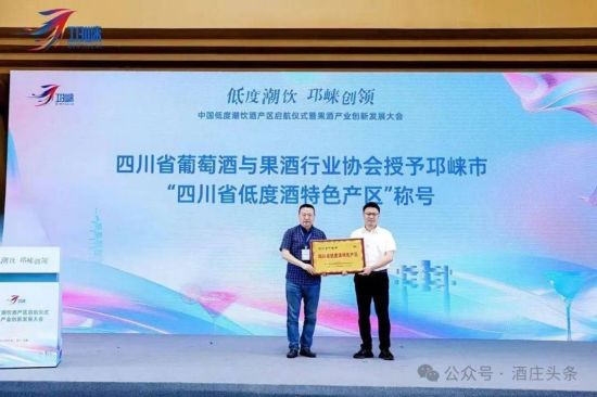 活动现场,四川省葡萄酒与果酒行业协会授予邛崃“四川省低度酒特色产区”称号。