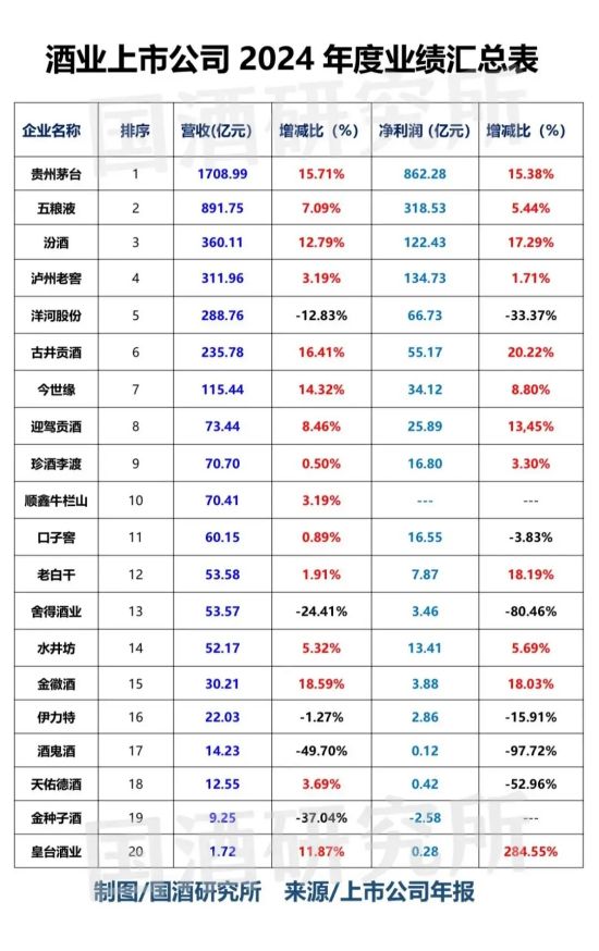 中国酒业上市公司2024年度业绩出炉。可谓是有喜有悲,喜忧参半。