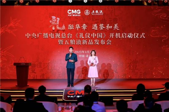 4月28日,中央广播电视总台《礼仪中国》开机启动仪式暨五粮液新品发布活动在京举行。中央广播电视总台编务会议成员兼总经理室总经理彭健明,五粮液集团(股份)公司党委书记、董事长曾从钦出席活动,并与总台华语环球节目中心主任麻静,央视国际网络有限公司党委书记、董事长、央视频融媒体发展有限公司总经理过彤,总台四川总站副站长郑直,总台总经理室副召集人佘贤君,宜宾五粮液股份有限公司党委委员、副董事长张宇,宜宾五粮液股份有限公司党委委员、副总经理蒋佳共同启动《礼仪中国》节目开机仪式。