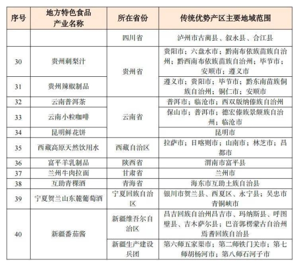 据了解,2023年3月16日,工业和信息化部等十一部门关于培育传统优势食品产区 和地方特色食品产业的指导意见;2024年10月8日,工业和信息化部发布“关于开展传统优势食品产区和地方特色食品产业重点培育工作的通知”,落实指导各地组织开展传统优势食品产区和地方特色食品产业重点培育工作。