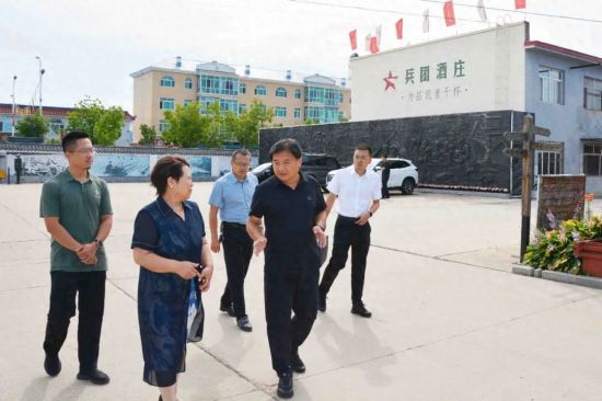 8月4日,黑龙江省绥滨县委副书记、县长刘海龙深入龙门福地酒业调研指导工作,县政府办主任张帅、县工信局局长刘佩宇,以及龙门福地酒业董事长陆书芬、副总经理刘洪见陪同调研。