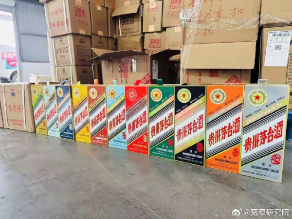 经过专业鉴定,贵阳市市场监督管理局执法人员决定对该批白酒实施查扣,共计查获侵权假冒白酒、特供酒1785瓶,以及侵权假冒包装材料753套。这些酒类产品包括“茅台内供酒”“贵州茅台酒”“世博会专供酒”等,有效防止这些假冒伪劣产品流入市场,保护了消费者的合法权益。(宽窄研究院酒业财经)