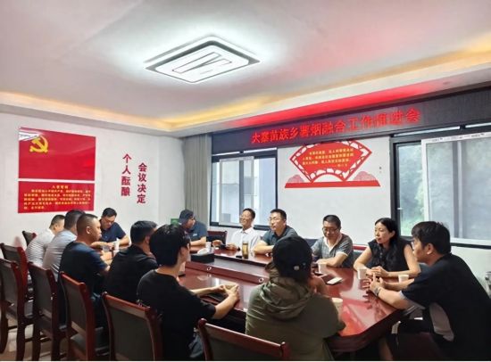 在种植基地了解种植物生长情况,并与泸州市烟草公司副经理李斌、大寨苗族乡人大主席李涛等相关负责人座谈,就大寨苗族乡粮-烟融合产业、生物质杯绿色育烟、土壤培肥保育等方面进行了交流,并在资源共享、优势互补等方面达成合作共识,共同通过产学研高度融合推动科技成果技术落地,促进地方优势产业粮-烟融合协同发展。